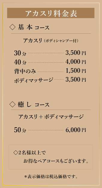 ※当店の施術はリラクゼーションを目的と考えており医療行為ではございません。